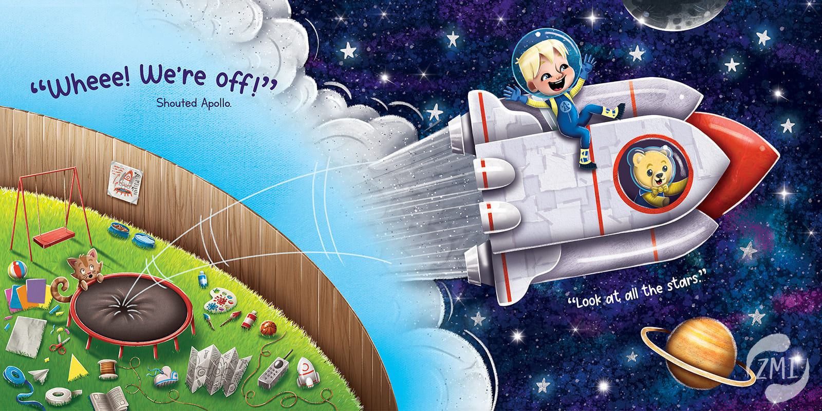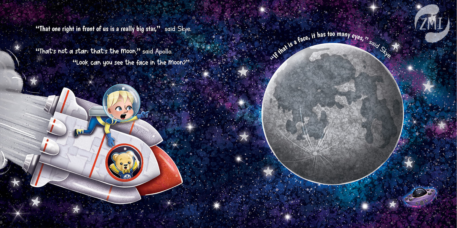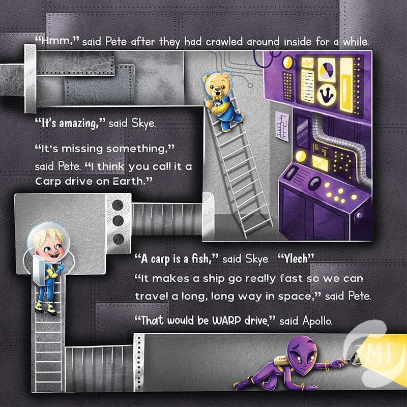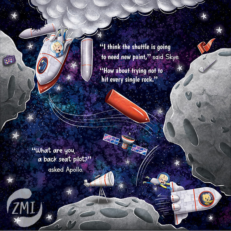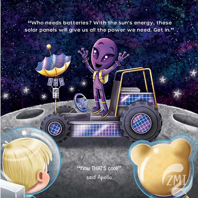 When Skyler and his Astrobear best friend Apollo blast off to the Moon, the last thing they expect is to meet a real live alien! With a magic backpack and clues that show up on the soles of his feet, Pete the alien quickly brings Skyler and Apollo on the space adventure of a lifetime.
