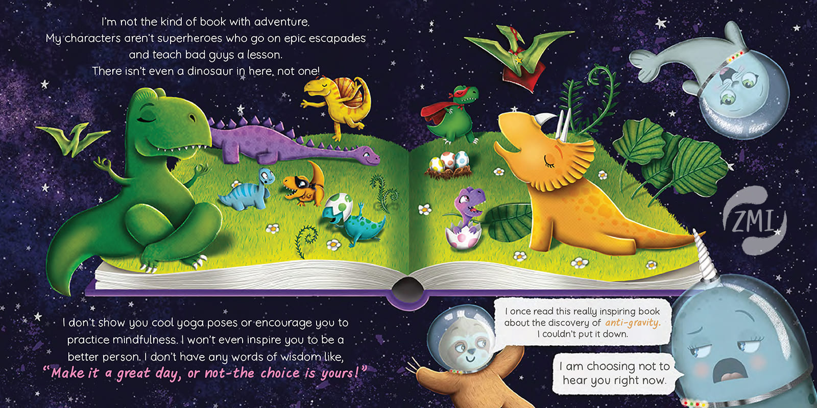 I love the expressions that Zoe gives the characters on every page of I’m NOT Like Other Books! Zoe has been a dream to work with. She has really brought this silly story to life with her lively and playful illustrations!